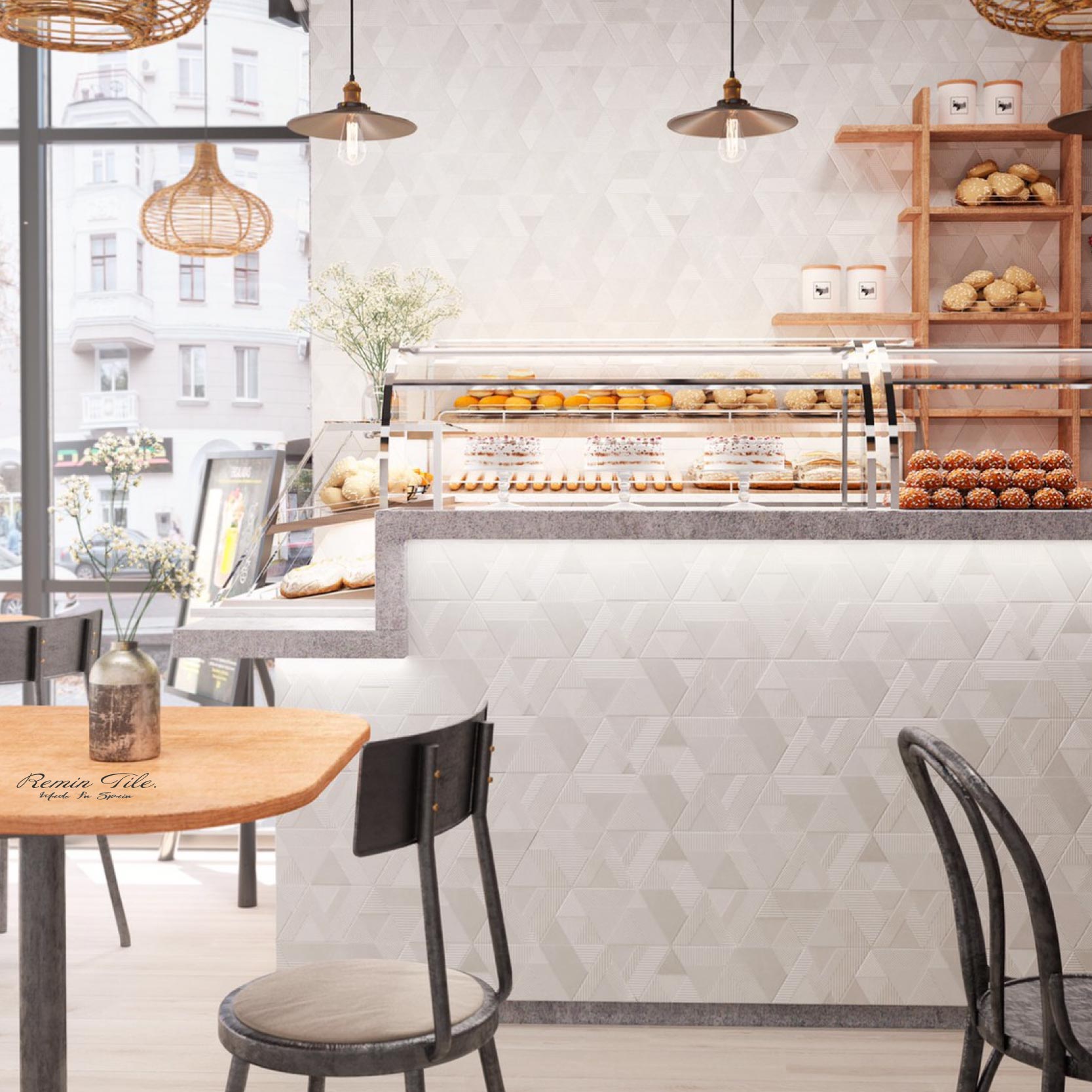 幾何立面六角磚-三稜鏡-立體彩釉白