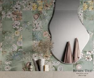 > 莫蘭迪花磚-綠-四葉草素磚