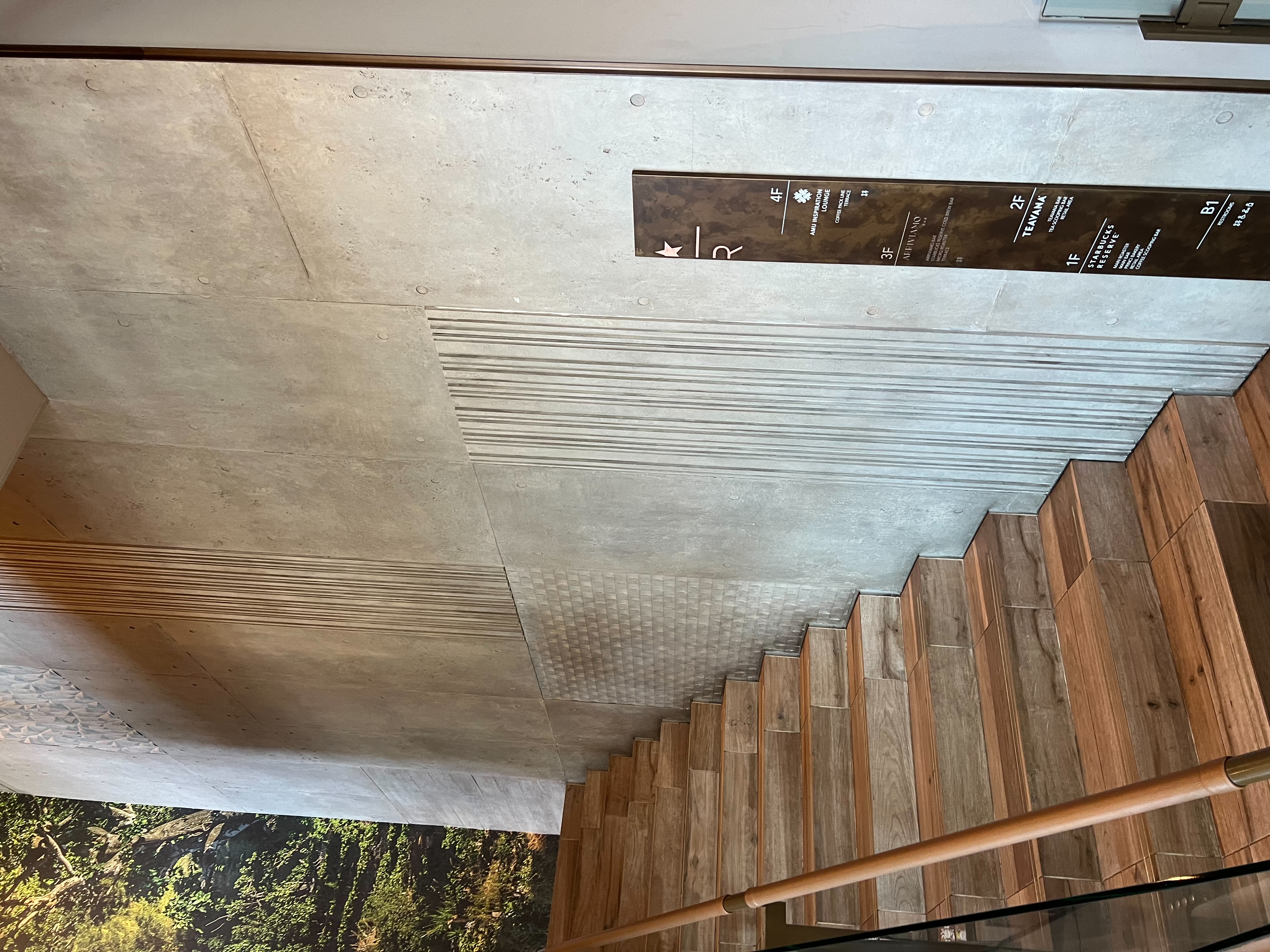 牆面清水模搭配樓梯木紋磚結合五金的應用,賦予了特色與功能