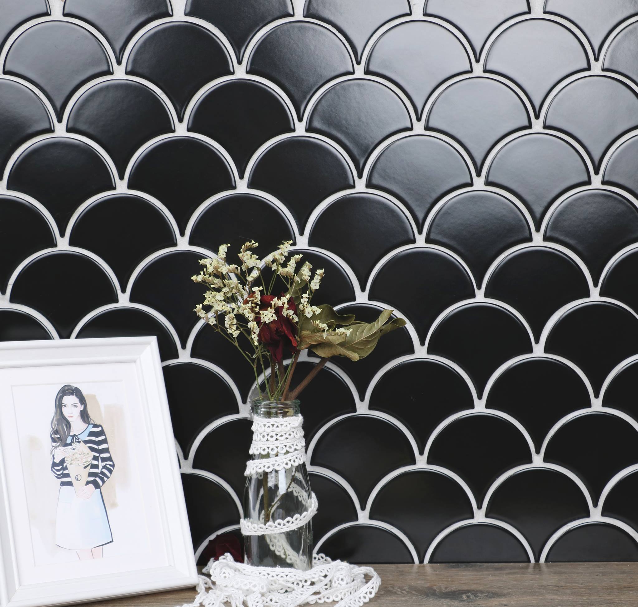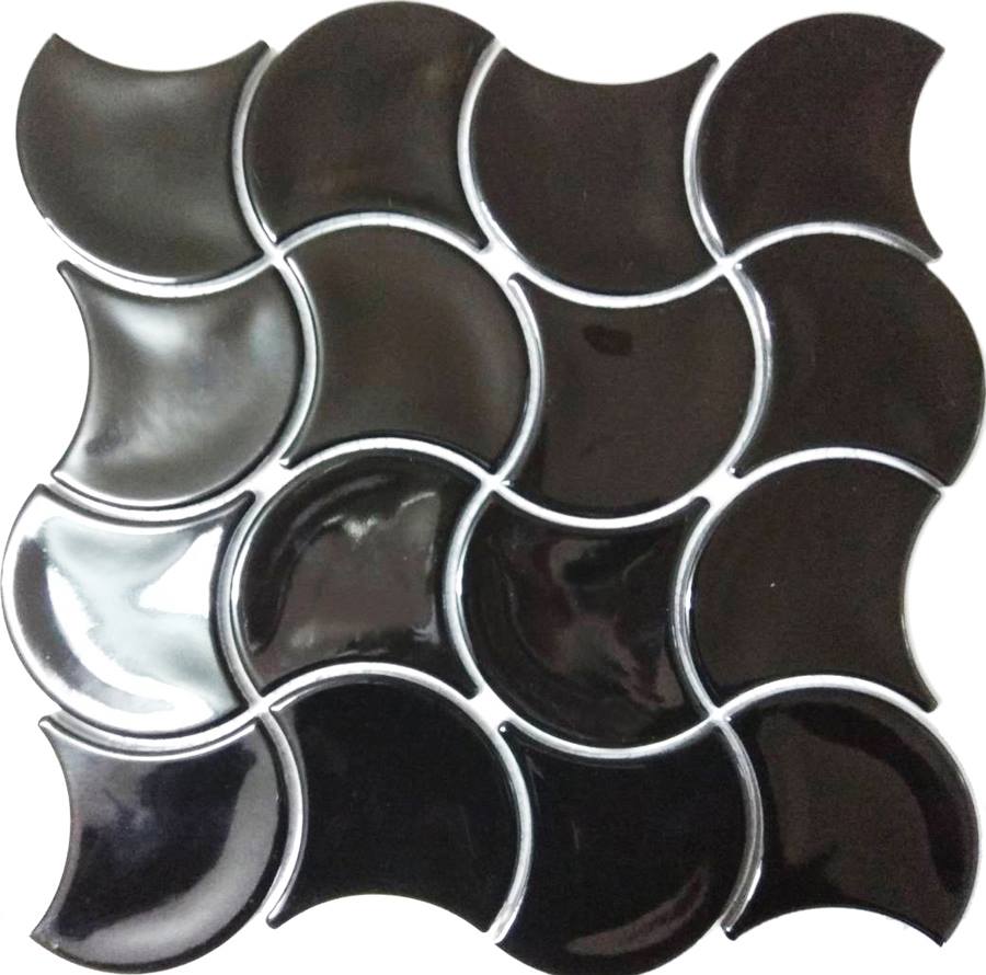 馬賽克-杏葉-黑/波浪黑